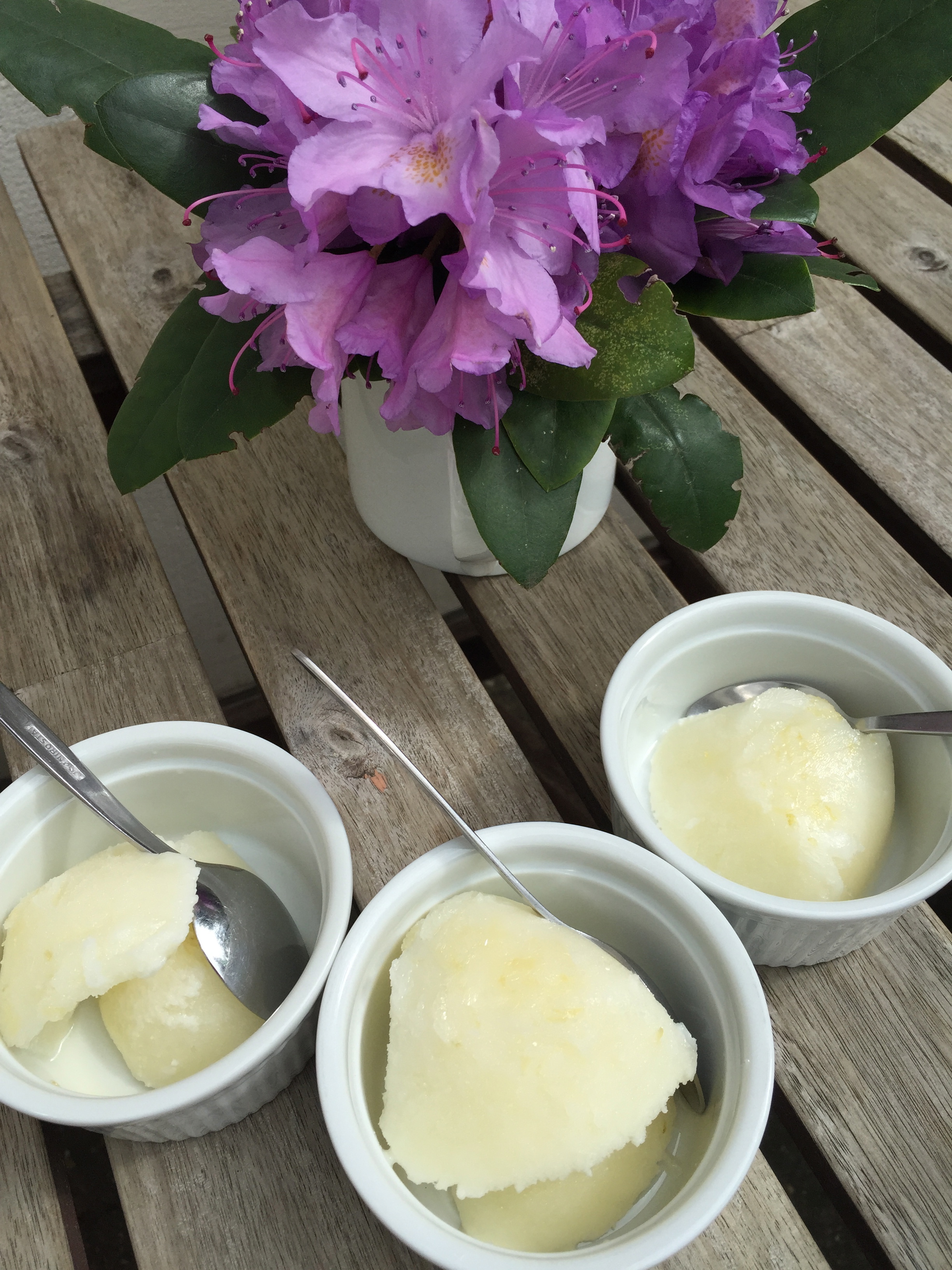 Der große Vorteil dieses Sorbets, es muss nicht einen Tag zuvor zubereitet werden, so wie das meiste Eis auf Milch-Sahne-Ei-Basis.