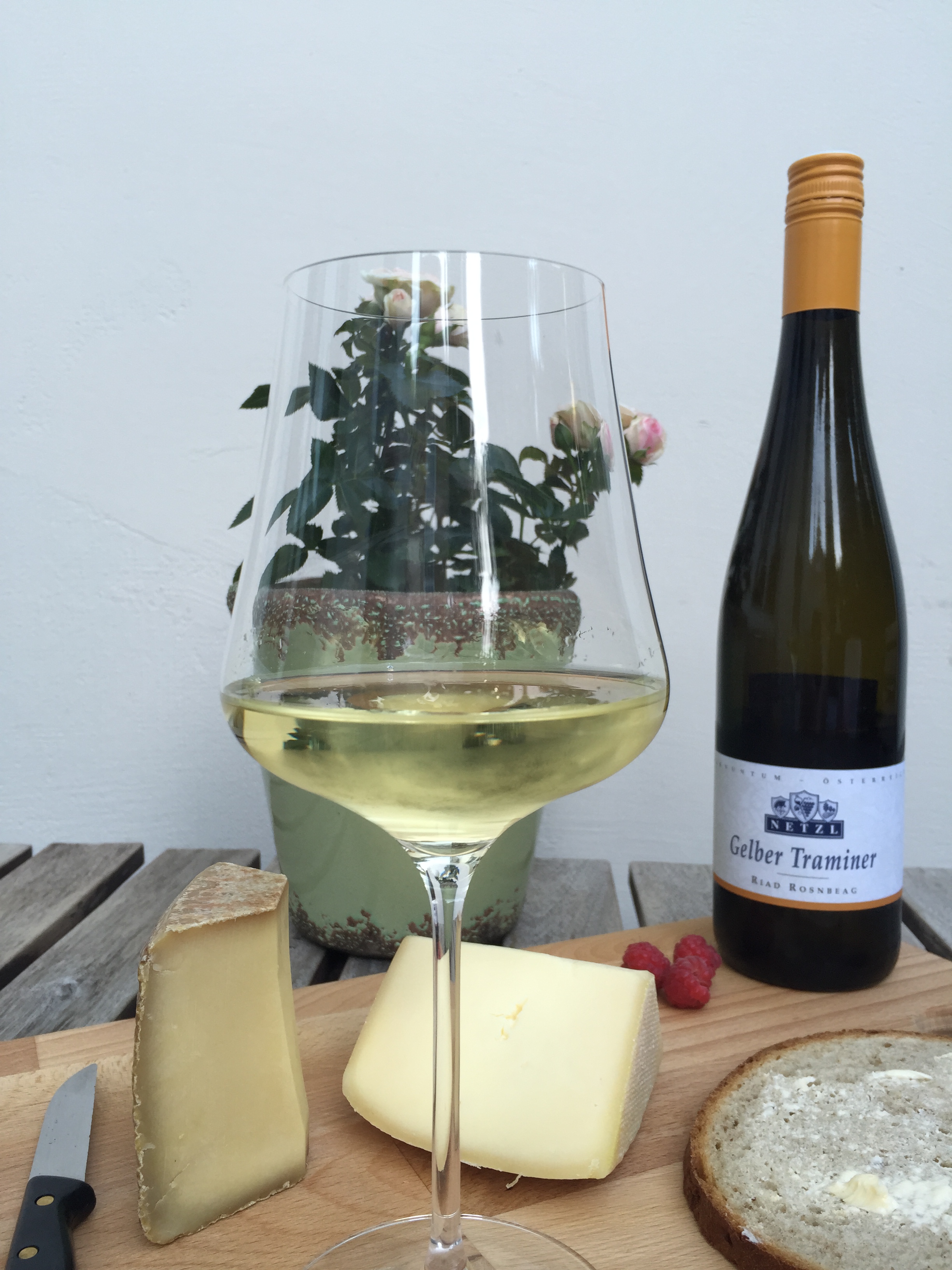 Nun, der Käse hatte jetzt genug Zeit Zimmertemperatur anzunehmen, der Traminer, um gut gekühlt den Sommertemperaturen stand zu halten.