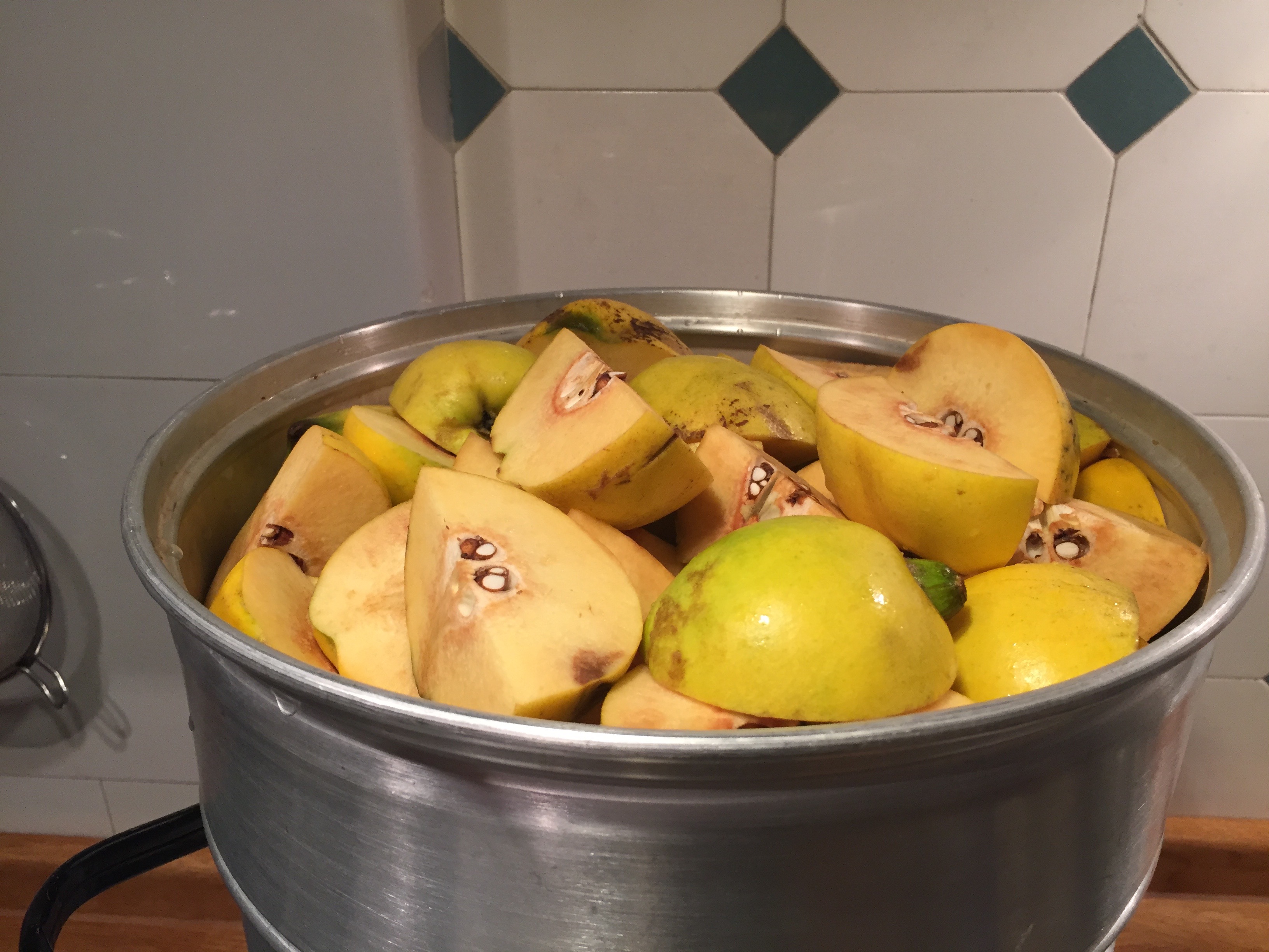 Was für ein Duft! So riecht der Herbst. So gelb sind sonst nur noch die Blätter an den Bäumen. Und was macht man mit einem Korb geschenkter Quitten? Als Süßfrühstücker ganz klar ein Gelee. Wir bringen sie „zum Erstarren“. Also, Topf frei für die letzte frische Frucht in diesem Jahr.