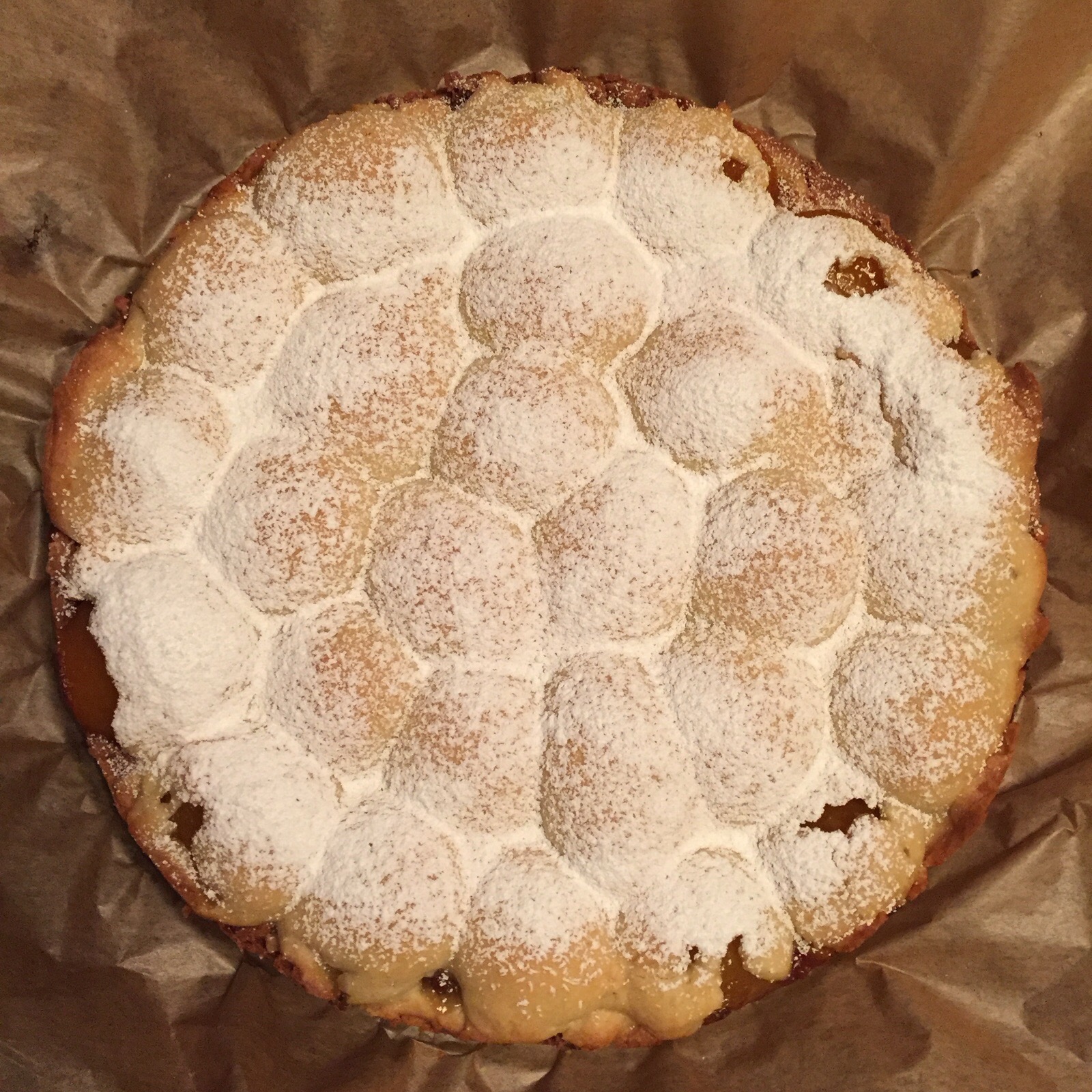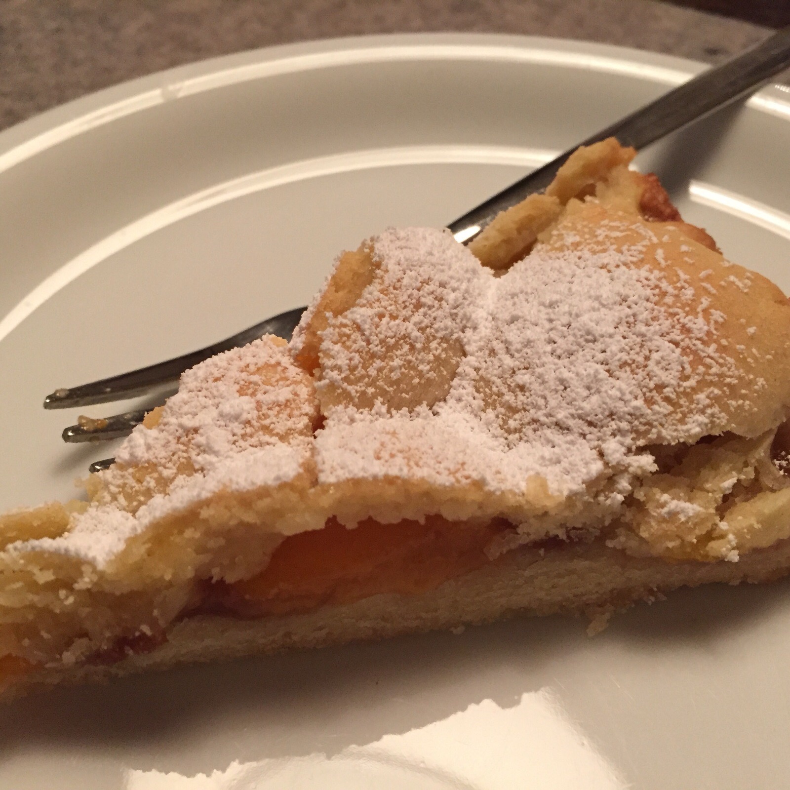 Der Mürbeteig passt zum Startcountdown: 3–2–1. 300 g Mehl (halb Weizen, halb Dinkel), 200 g Butter, 100 g Zucker und 1 Ei. Alles miteinander verkneten und dann im Kühlschrank (oder draußen) abkühlen. Den Teig in zwei Hälften teilen. Beide Hälften auf Springformgröße ausrollen. Dafür einfach Backpapier in die Springform einspannen, lösen und den Teig auf den Abdruck der Form ausrollen. Diesen Vorgang mit der zweiten Teighälfte wiederholen. Die erste Teigplatte auf Backpapier wieder einsetzen. Mit zerbröselten Amarettini bestreuen und mit Aprikosenhälften belegen (Wölbung nach oben). Anschließend mit der passend ausgerollten, zweiten Teigplatte bedecken. Bei 180 °C (Ober-/Unterhitze) für 45 Minuten backen. Abschließend Frau Holle spielen und mit ordentlich Puderzucker bestäuben.