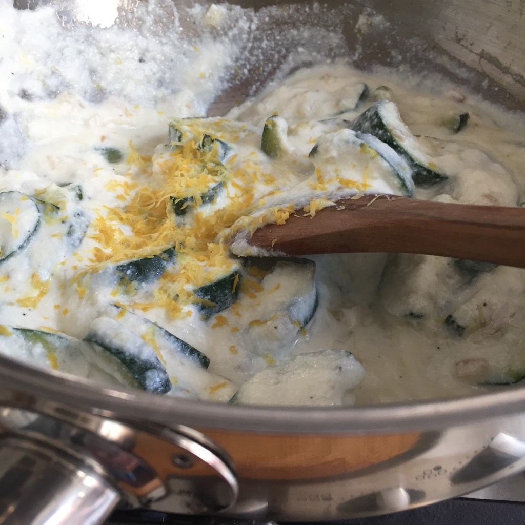 Den Ricotta unter die Zucchini heben und leicht weiter köcheln lassen.