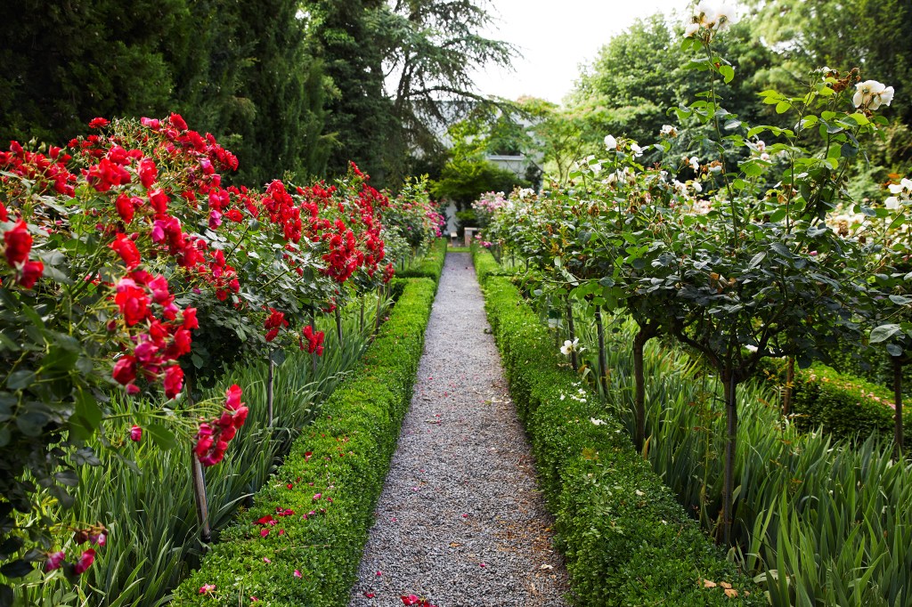 Wahrscheinlich dreht das ZDF Corona-bedingt gerade sämtliche neuen Rosamunde Pilcher Folgen in der traumhaften Gartenanlage des Weinguts. Allein im Rosengarten finden sich 350 Arten, die jetzt ihren Duft verströmen und mit der Eleganz der Weine konkurrieren.