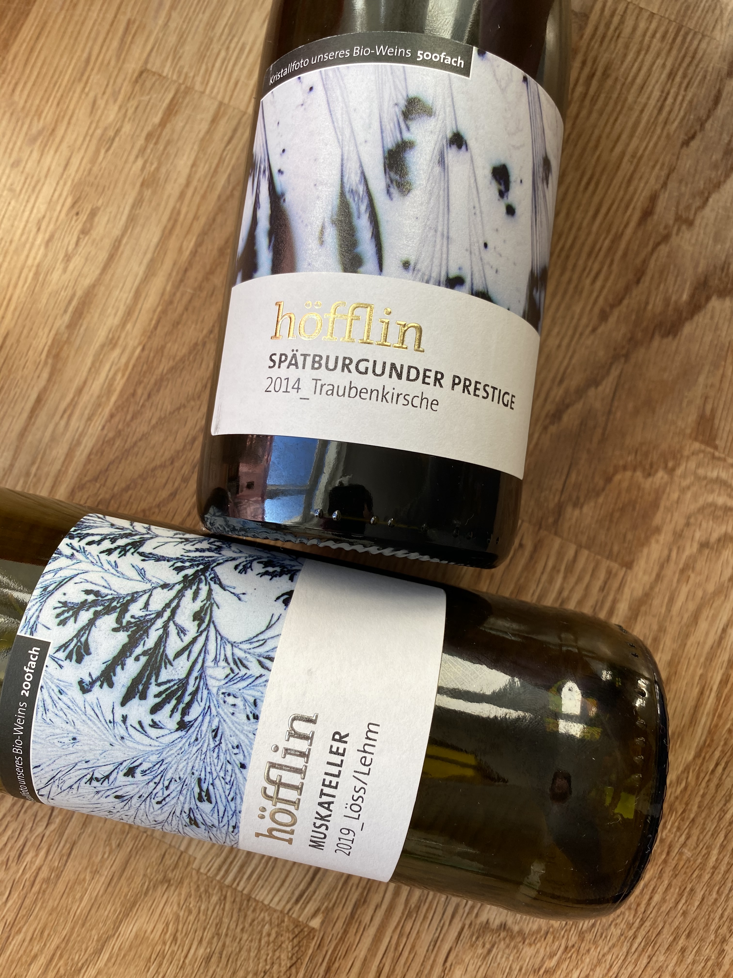 Dass den Höfflins die Tiefe und Struktur ihrer Weine am Herzen liegt zeigen sie auch auf ihren Etiketten. Unter dem Mikroskop haben sie ihre Weine fotografiert. Und siehe da, jeder Wein hat einzigartige Kristallstrukturen. Aber wen wundert es, dass das Wunder Natur mit jedem Detail mit Schönheit fasziniert.