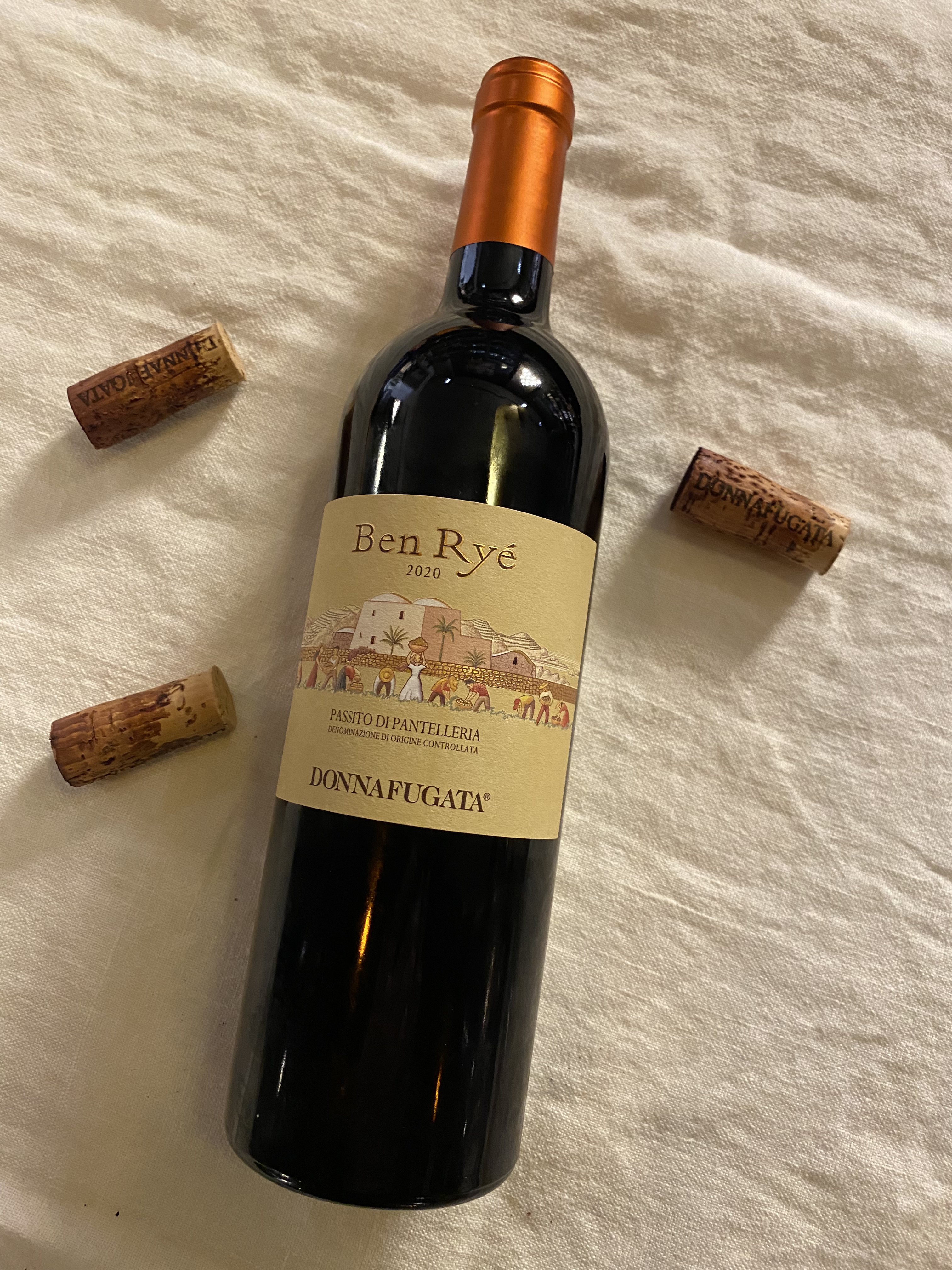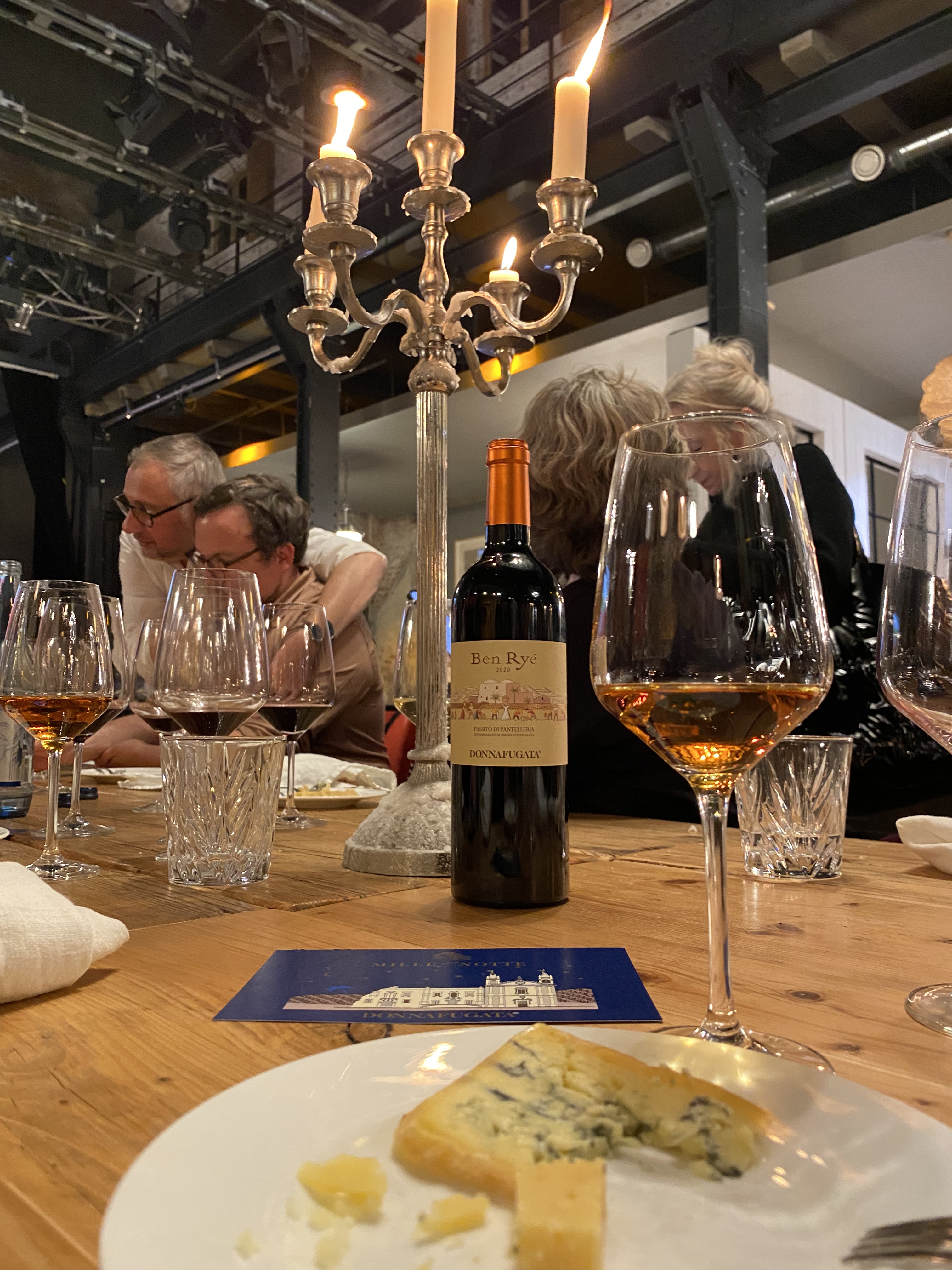 Der Abend ist lang und die Nacht wird arabisch. Zum Abschluss wird der „Sohn des Windes“ eingeschenkt. Ben Ryé hat seine Heimat auf Pantelleria, wo der Wind konstant durch die Weinberge weht. Das Besondere an diesem Wein: die Beeren der Zibibbo Trauben (ein Moscato) werden nach der Selektion von Sonne und Wind über Wochen getrocknet. Diese werden zu frischem Traubenmost hinzugefügt und gemeinsam vergoren. Das Ergebnis ist ein sehr fruchtiger, bernsteinfarbener Passito mit schöner Frische und einer Nase, die an frischen Traubensaft erinnert. Faszinierend, wenn man bedenkt, dass die Insel nur 60 km von der afrikanischen Küste entfernt liegt.