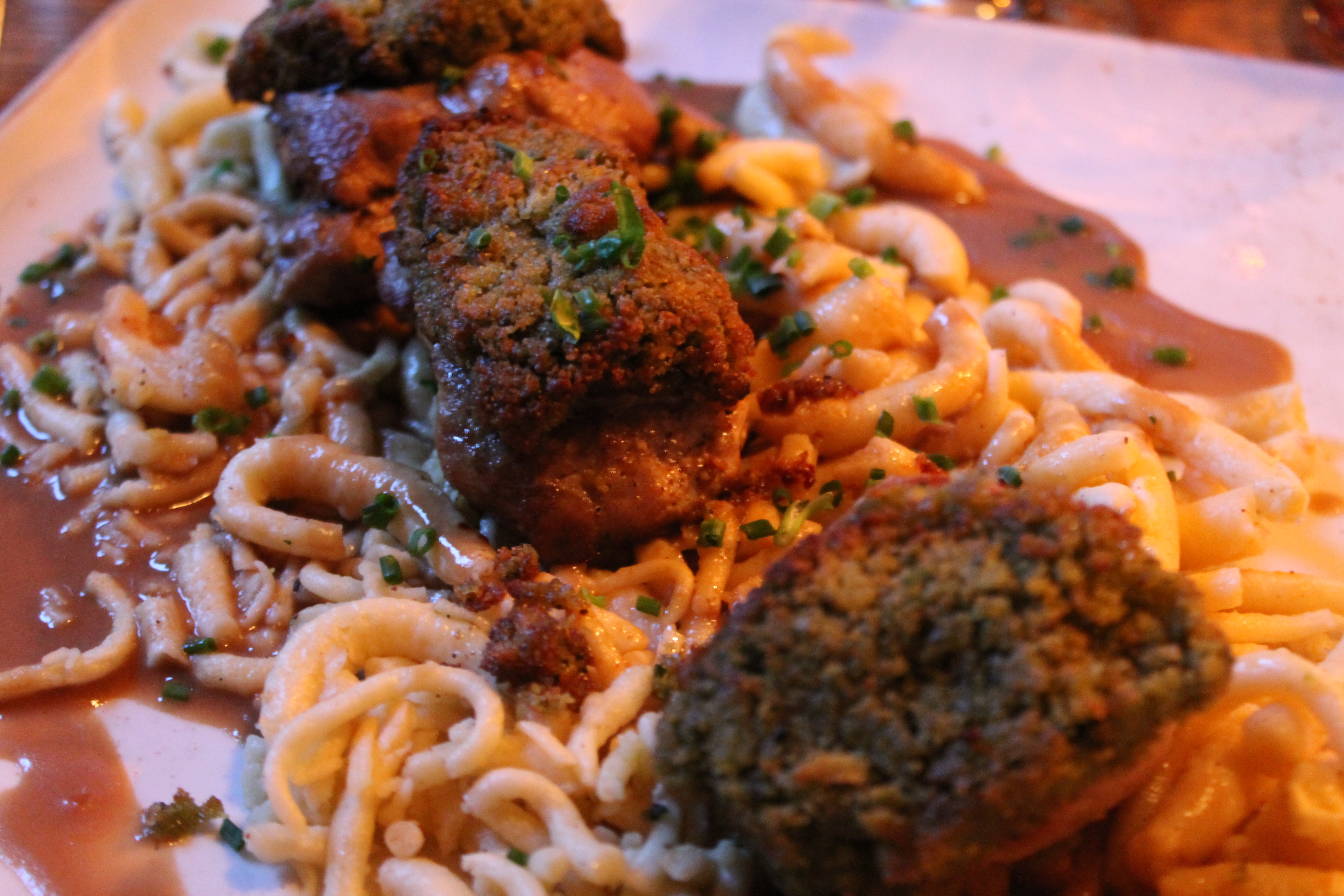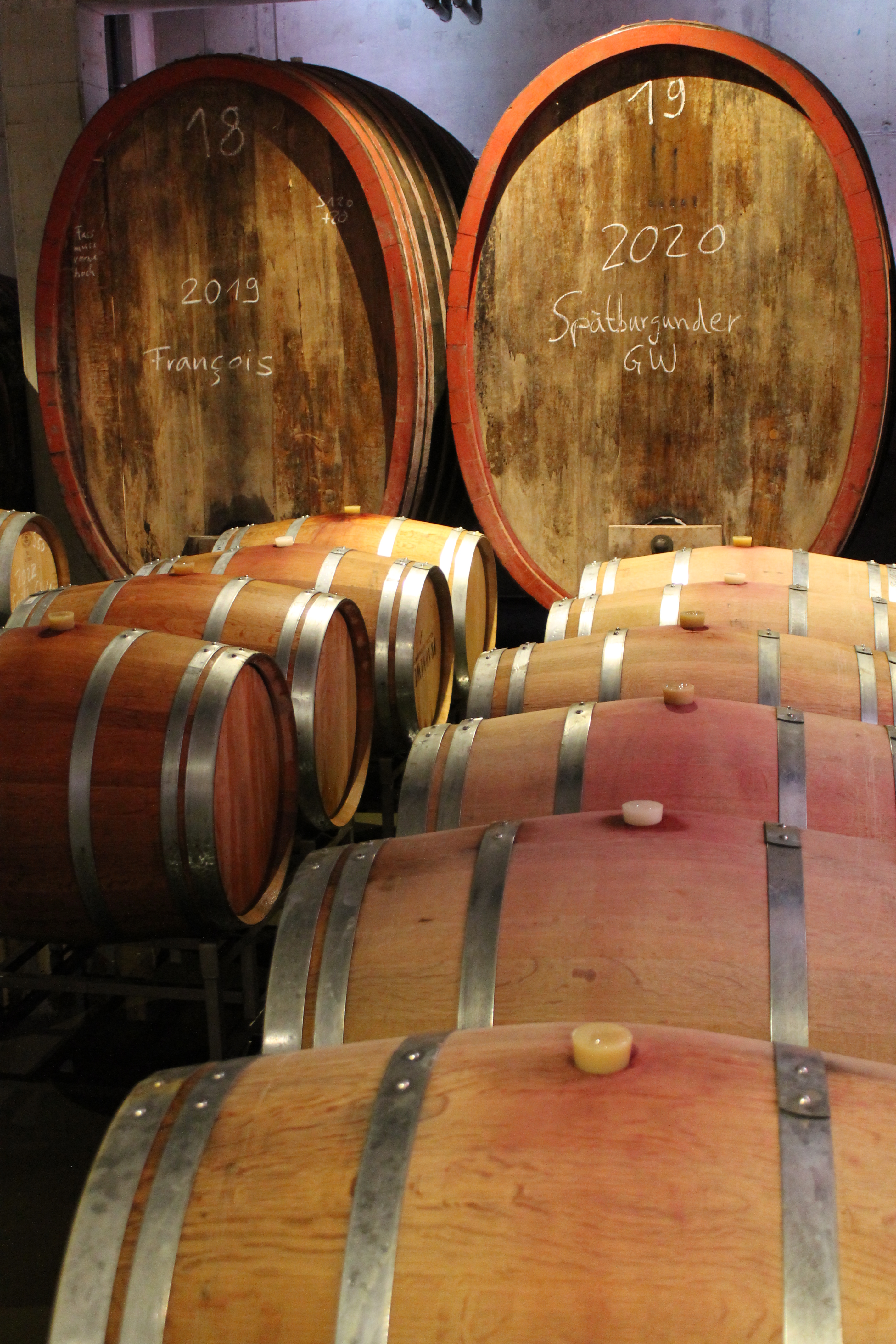 Mommenheim wird zum Bottle Stop Nummer 3. Hier betreibt Familie Becker ihr Weingut und hat gleich nebenan, direkt in den Weinbergen, ein Hotel gebaut – Mein Weinzuhause. Mit Blick auf die Weinberge checken wir ein, bevor wir das neu erbaute Hotel und den Weinkeller besichtigen. Jedes Zimmer ist nach einer Weinbergslage benannt, liebevolle Details zitieren den Weinbau und finden sich überall wieder – alte Dauben, wie man die einzelnen „Holzsprossen“ von Weinfässern nennt, sind beispielsweise zu Garderoben umfunktioniert. In Zornheim lassen wir den Abend in einer alten und sehr gemütlichen Weinstube aus dem 17. Jahrhundert ausklingen, in der ein ambitionierter Küchenchef regional-saisonal kocht.
