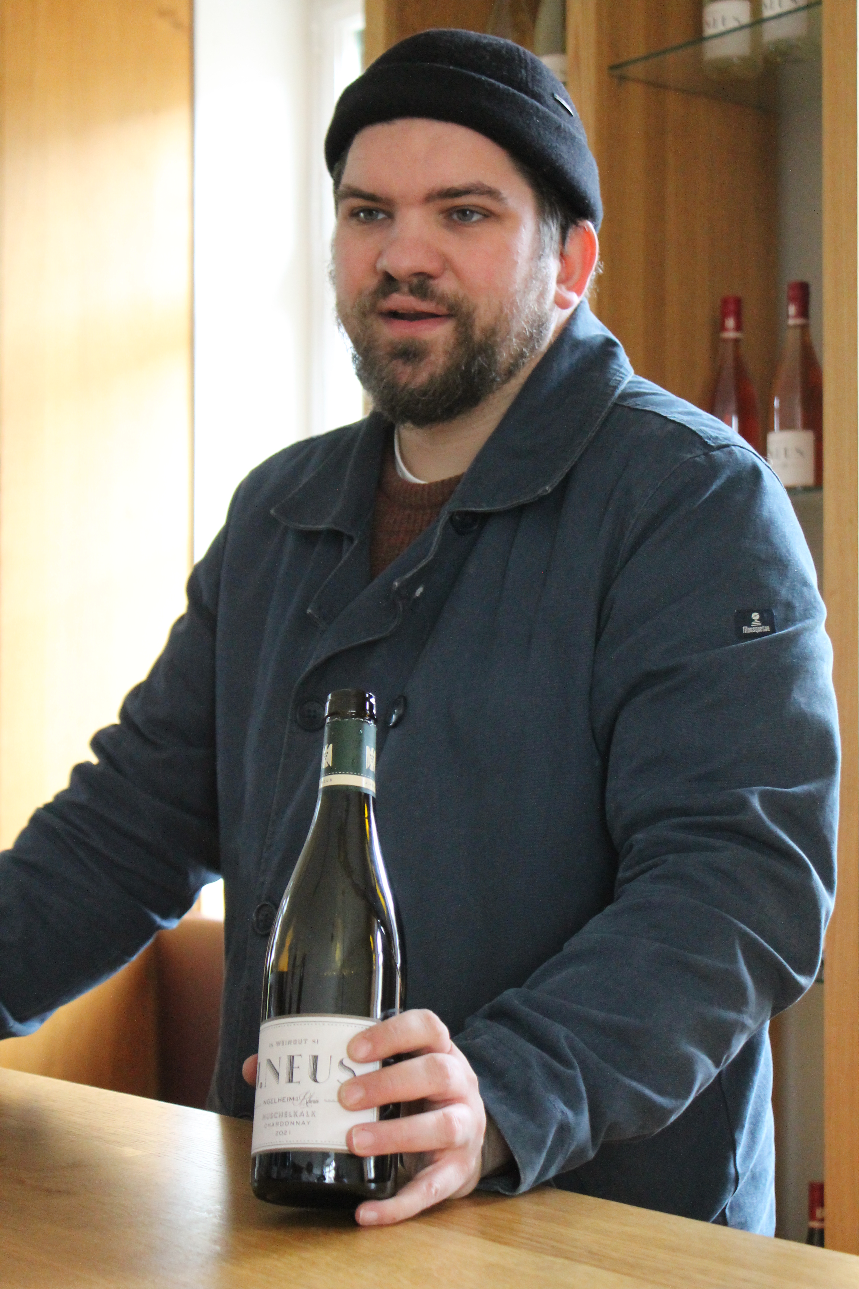 Samstag, 2. Tag mit drei weiteren Bottle Stops. Nach einem Schlaraffenland-Frühstück im Hotel Mein Weinzuhause geht es auf nach Ingelheim. Hier wurde 1881 das VDP Weingut J. Neus gegründet, selbst auch Gründungsmitglied des VDP. Bei unserem Bottle Stop 1 dreht sich alles um Burgundersorten, die uns Betriebsleiter Simon Kissmann näherbringt. Im Fokus Chardonnay und Spätburgunder. Der alte, beeindruckende Gebäudekomplex, der komplett unterkellert ist, wird noch heute so, wie vor 140 Jahren geplant, genutzt. Der imposante Keller zeugt von der Bedeutung, die Ingelheim einst als Weinstadt hatte. Mit der Arbeit des Weinguts stehen die Chancen gut, daran anzuknüpfen. Die Weine sind charaktervoll, gleichzeitig elegant und sehr saftig. Das ist Trinkfluss auch fern des Rheins!